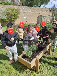 Il progetto è stato arricchito da un’esperienza pratica molto significativa: la semina di un piccolo orto negli spazi esterni della scuola, con piante aromatiche e ortaggi. Questo ha permesso agli alunni di cominciare a comprendere concretamente l’origine del cibo, sviluppando senso di responsabilità e rispetto per l’ambiente.